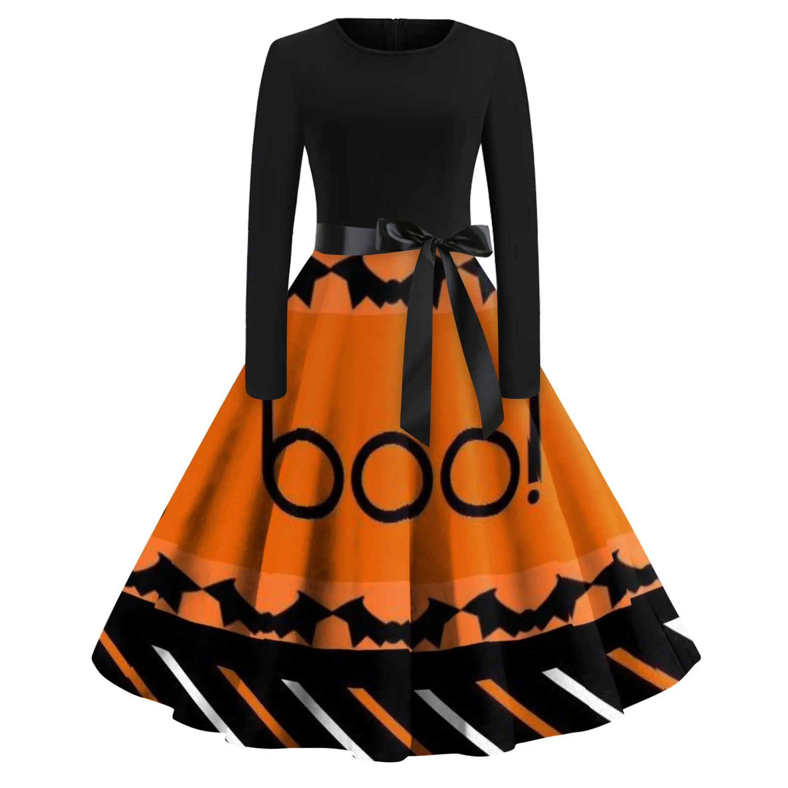 Женское винтажное классическое платье с длинным рукавом и круглым вырезом