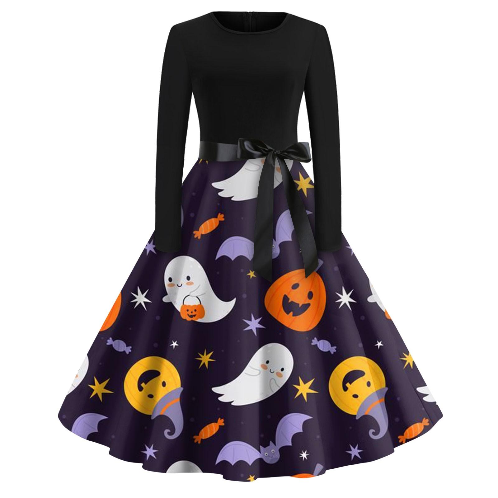 Женское винтажное классическое платье с длинным рукавом и принтом, V-образным вырезом, свободное платье XXL