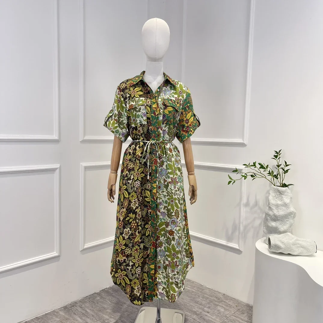 Женское винтажное льняное платье-миди с цветочным принтом, коротким рукавом