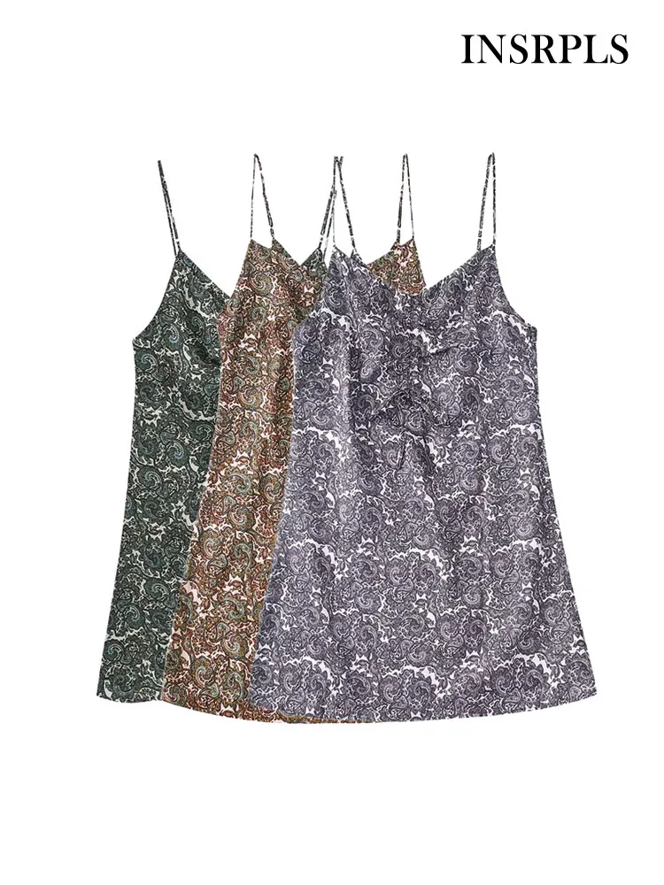 Женское винтажное мини-платье с принтом пейсли, молнией и открытой спиной