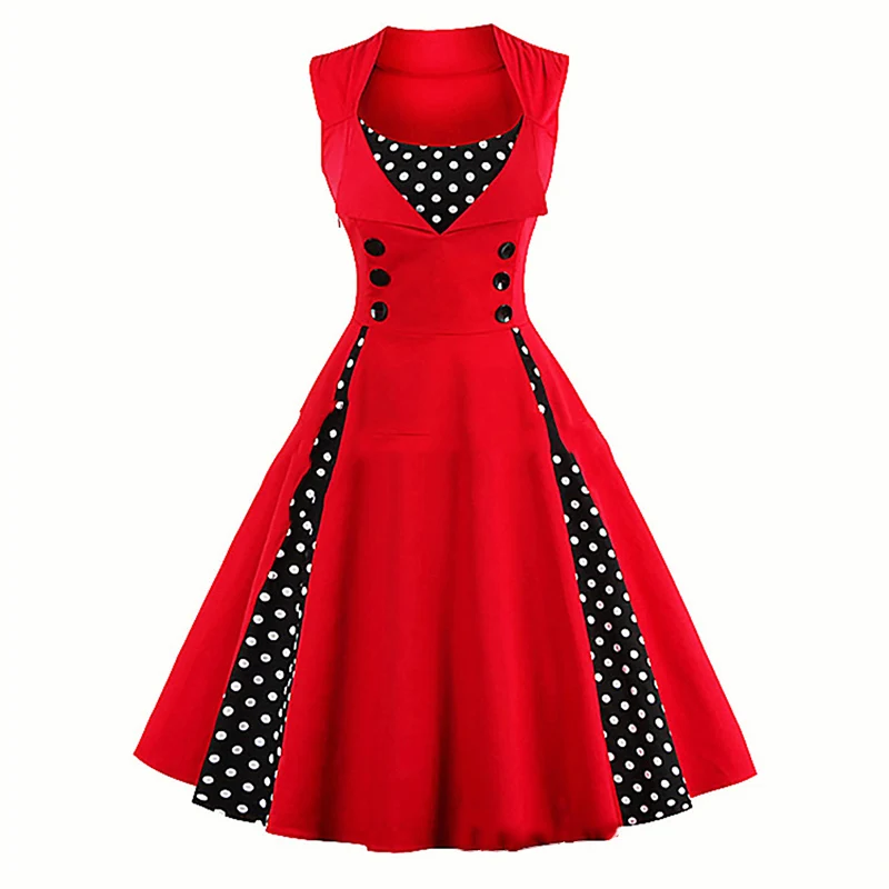 Женское винтажное платье в горошек, Красное или синее платье в стиле пэчворк, без рукавов, с широким подолом, весна-лето