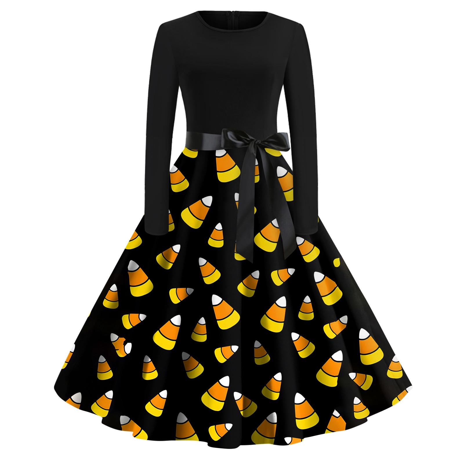 Женское винтажное платье для выпускного вечера с длинным рукавом и принтом на Хэллоуин для всей семьи S жёлтый