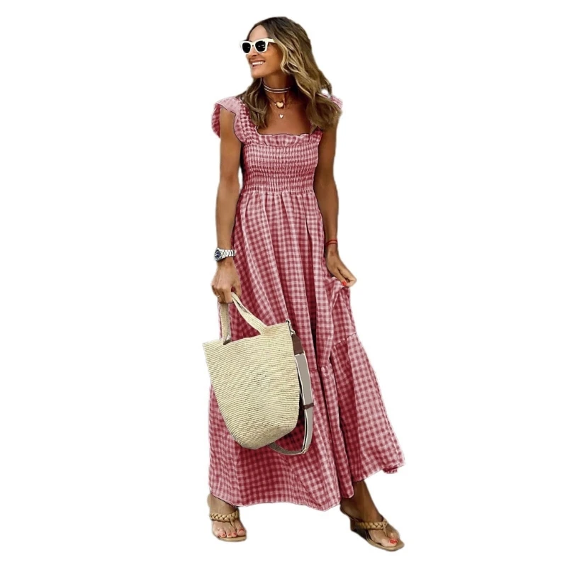 Женское винтажное платье макси в клетку, летнее сексуальное платье-майка без рукавов, Vestidos, Прямая доставка