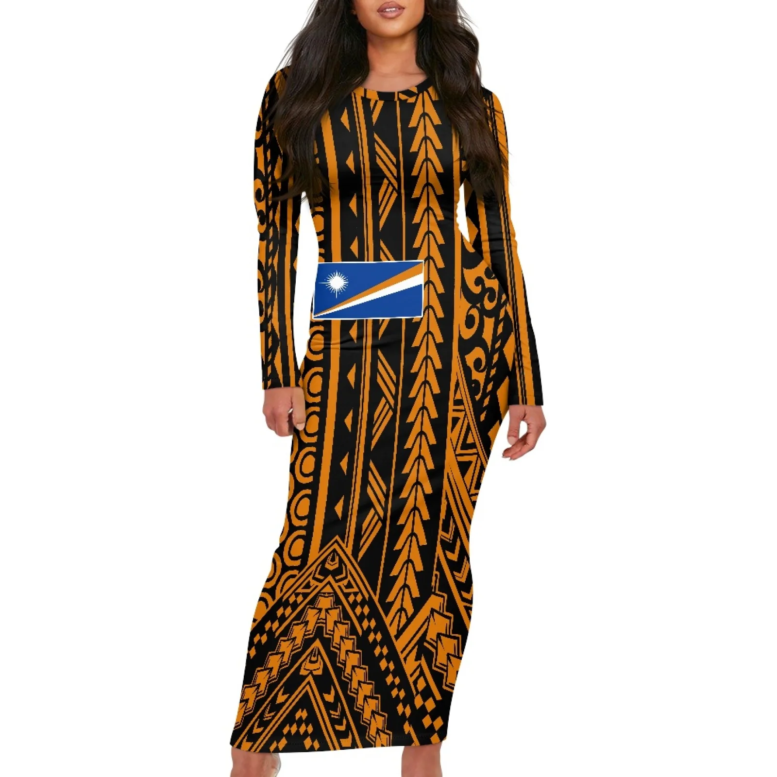 Женское винтажное платье макси с длинными рукавами и принтом флага зефирской Республики Полинезии
