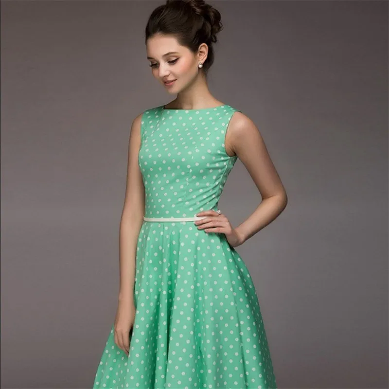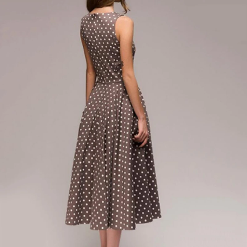 Женское винтажное платье-миди в горошек, с круглым вырезом