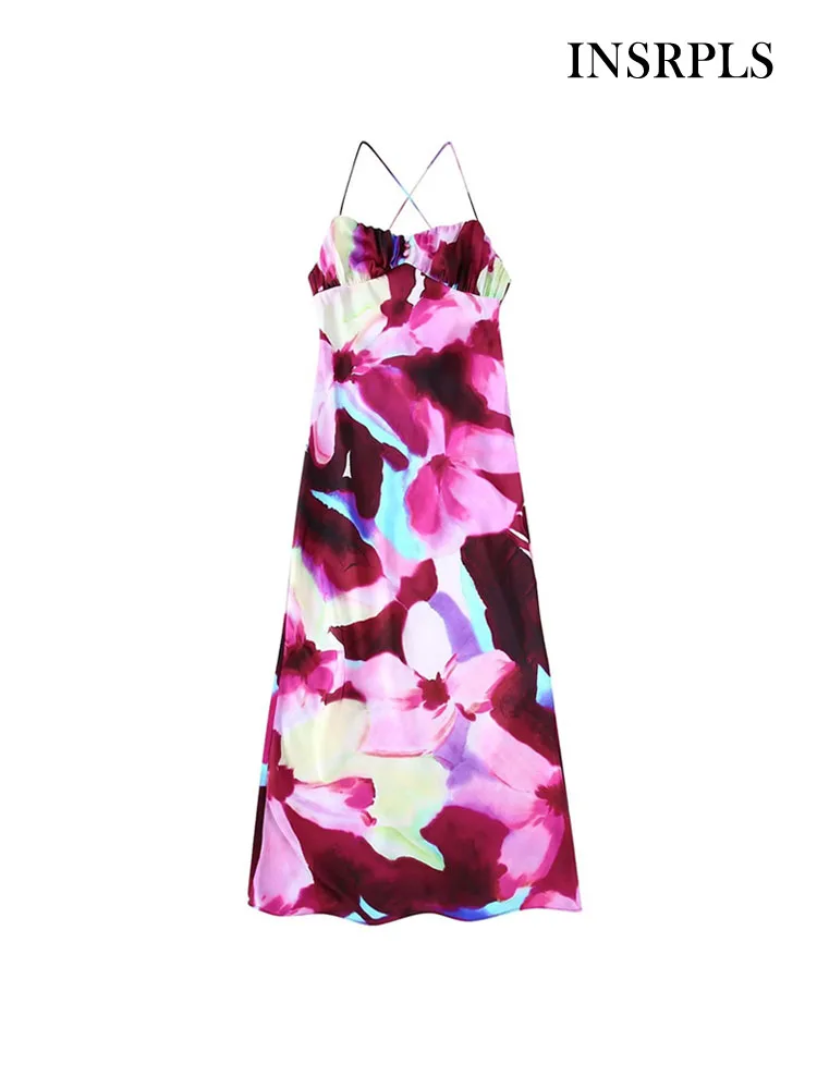 Женское винтажное платье-миди на тонких бретельках, с открытой спиной