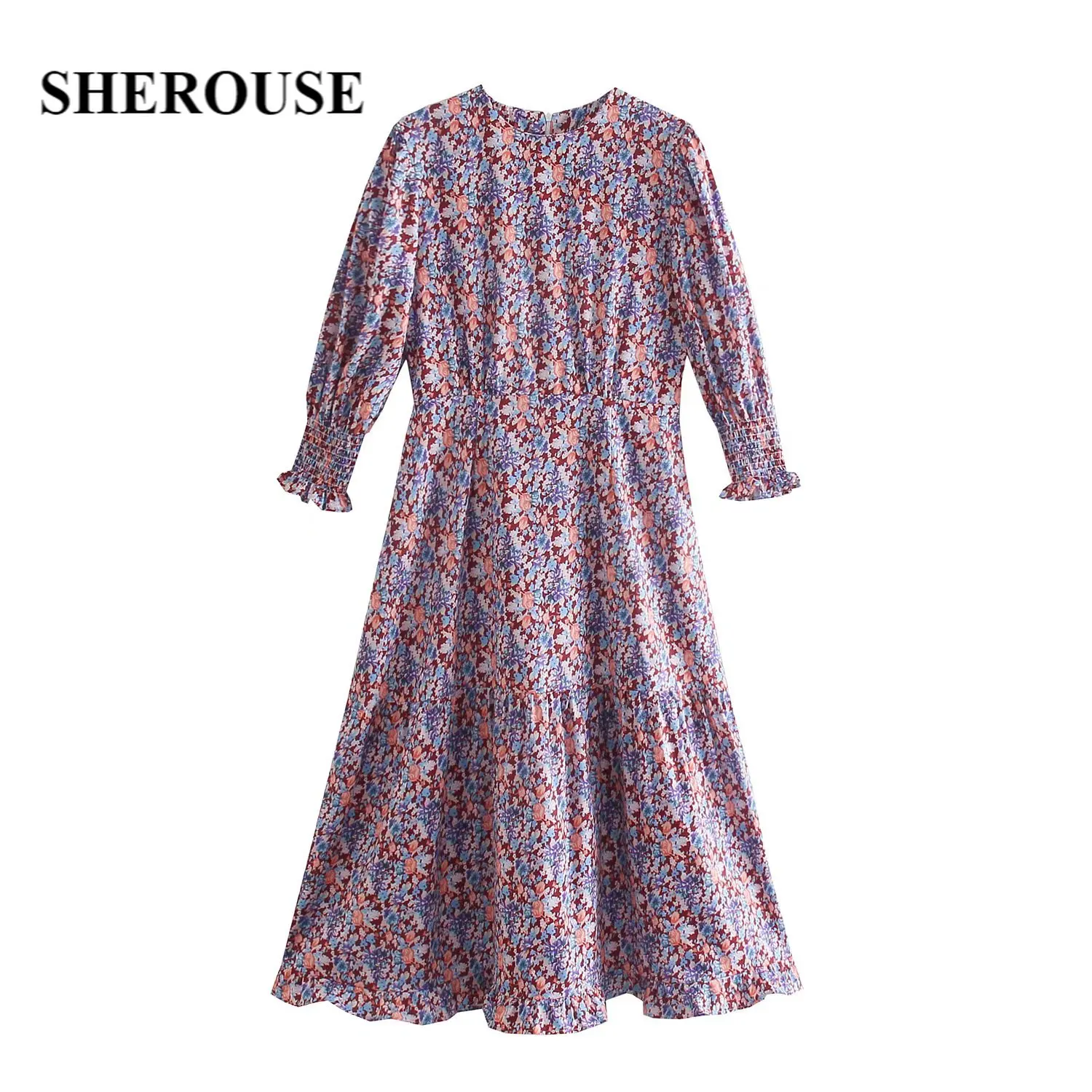 Женское винтажное платье-миди с круглым вырезом и рукавами три четверти Sherouse