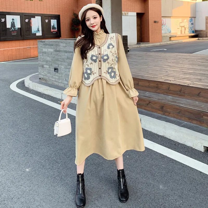 Женское винтажное платье-миди с цветочной вышивкой и воротником-стойкой