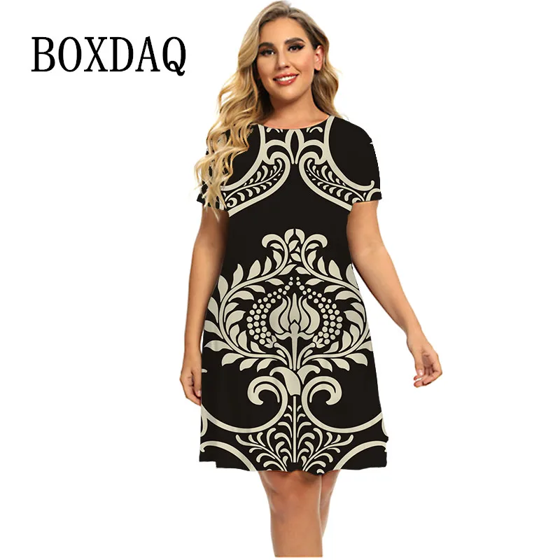 Женское винтажное платье-мини с коротким рукавом, круглым вырезом и цветочным принтом
