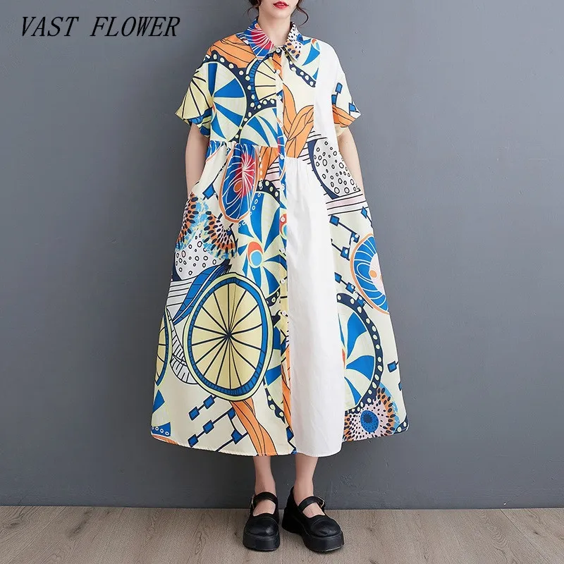 Женское винтажное платье-рубашка с коротким рукавом и цветочным принтом