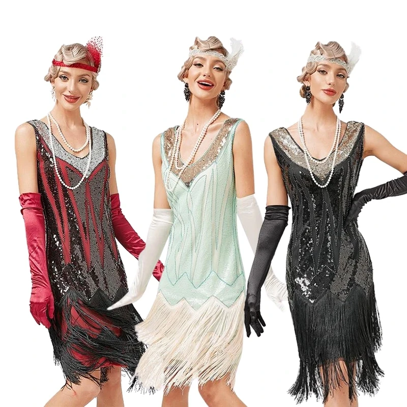 Женское винтажное платье с бахромой, коктейльное платье с V-образным вырезом и бахромой, в стиле 1920-х, лето 2023