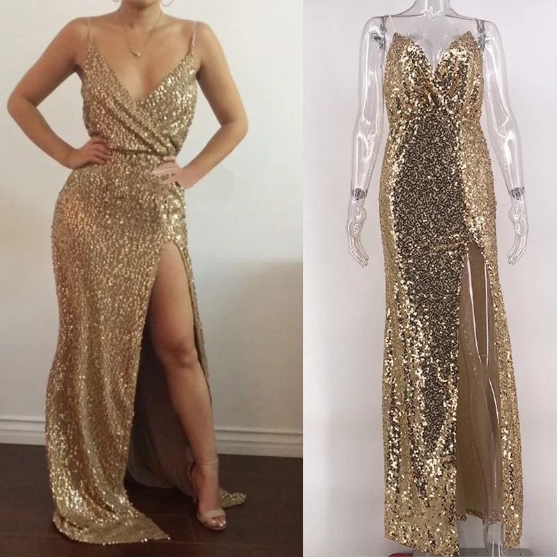 Женское винтажное платье с блестками, V-образным вырезом и открытой спиной