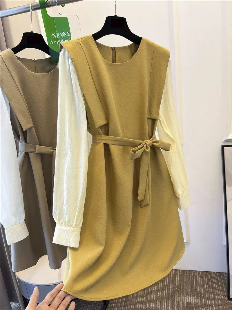 Женское винтажное платье с длинным рукавом, дизайнерское платье средней длины с длинным рукавом в Корейском стиле, 2023