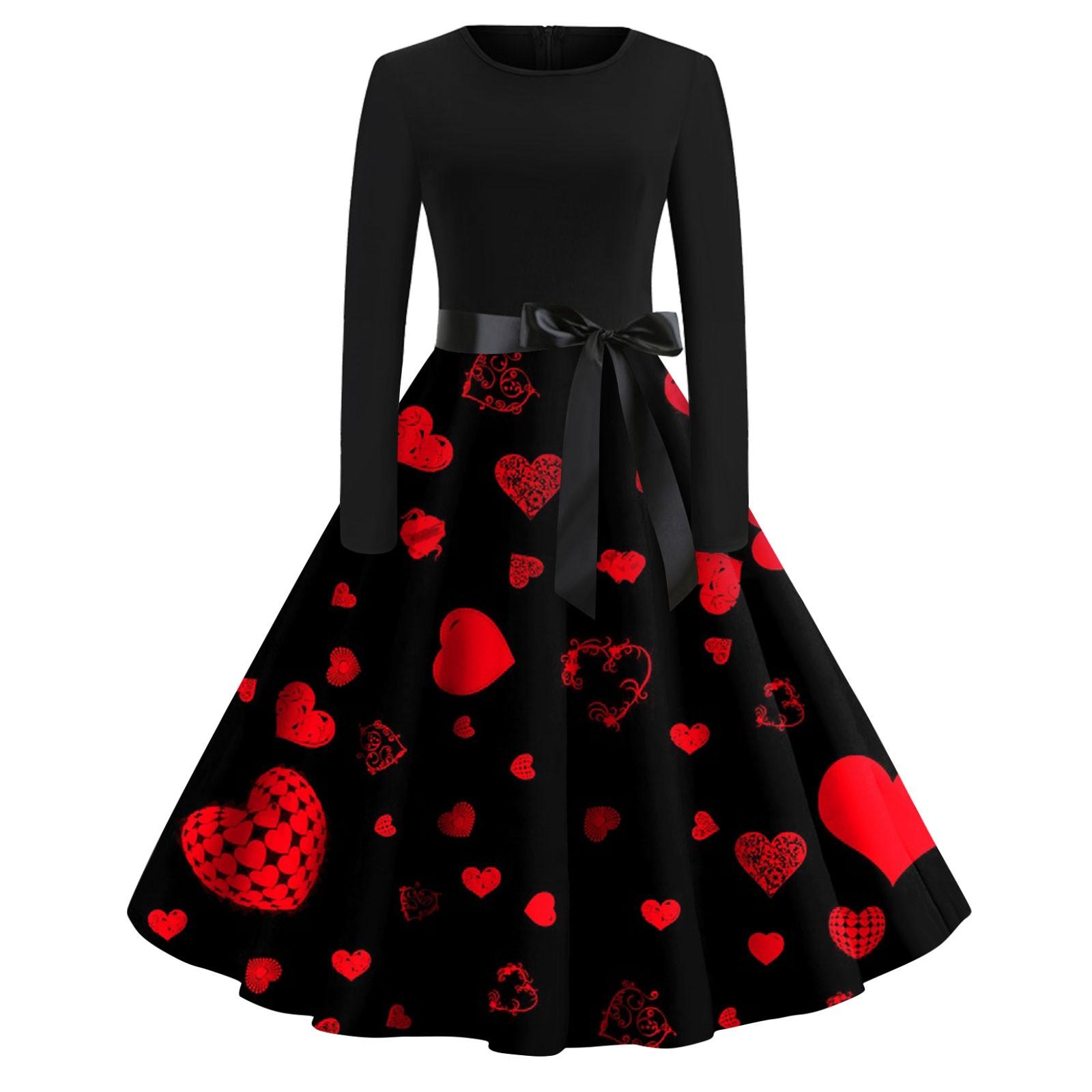 Женское винтажное платье с длинным рукавом и принтом на День святого Валентина для домохозяйки, вечернее платье для выпускного вечера S