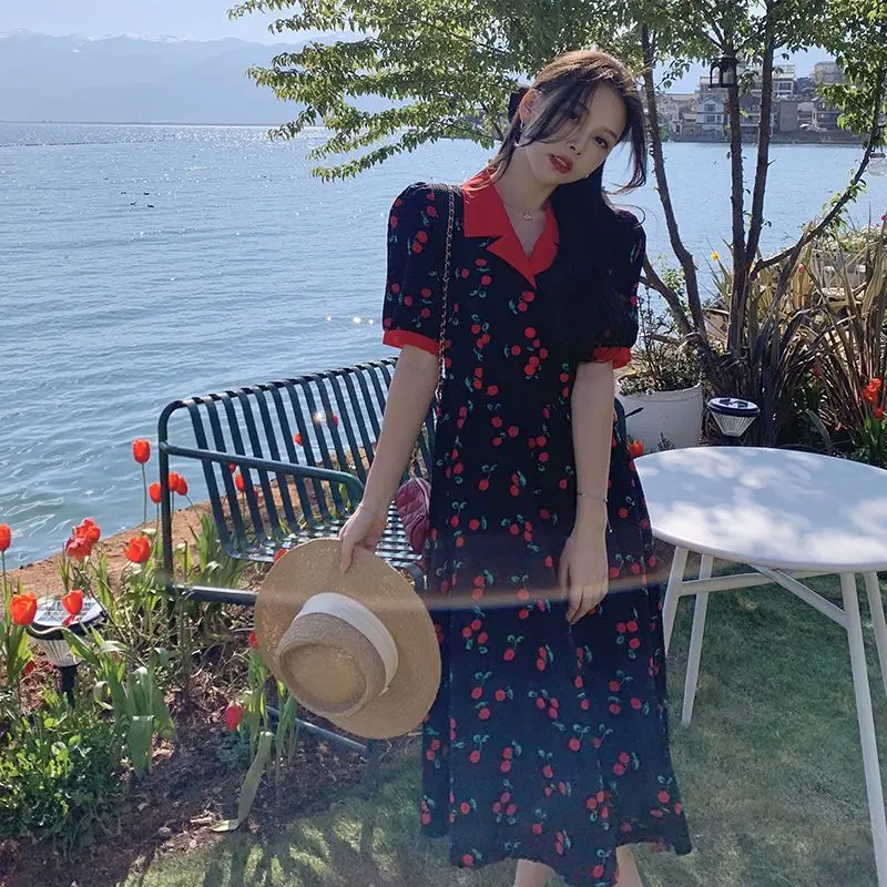 Женское винтажное платье с коротким рукавом, высокой талией и пышными рукавами