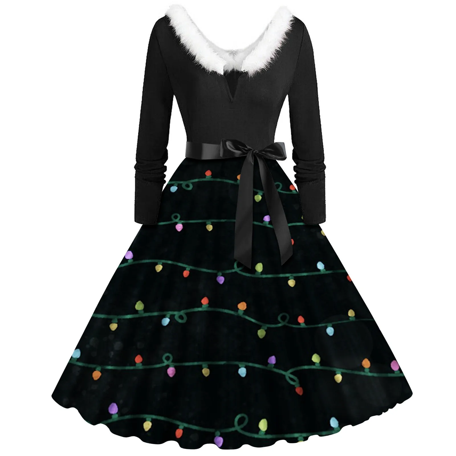 Женское винтажное платье с V-образным вырезом, длинным рукавом