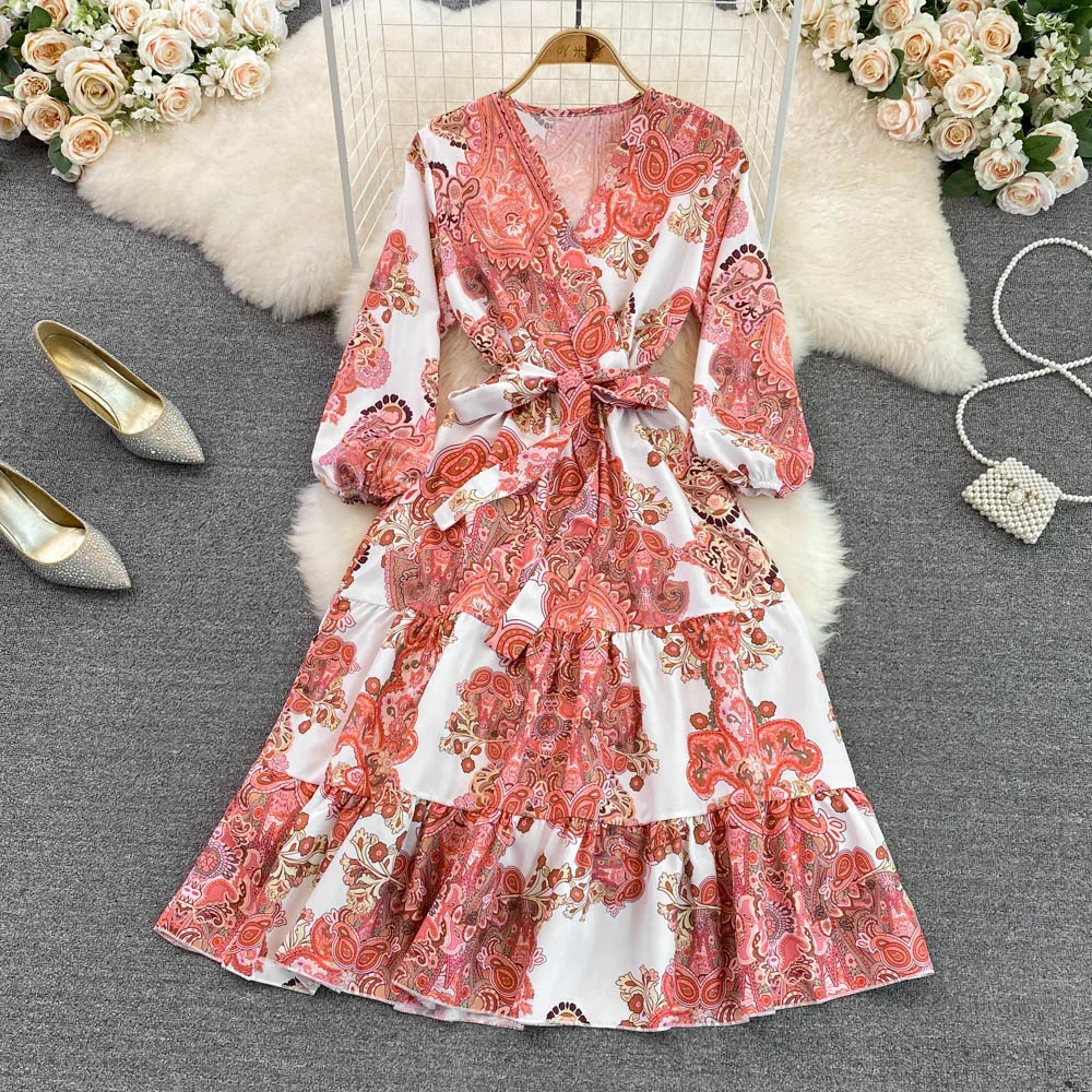Женское винтажное платье-трапеция с рукавом три четверти и V-образным вырезом