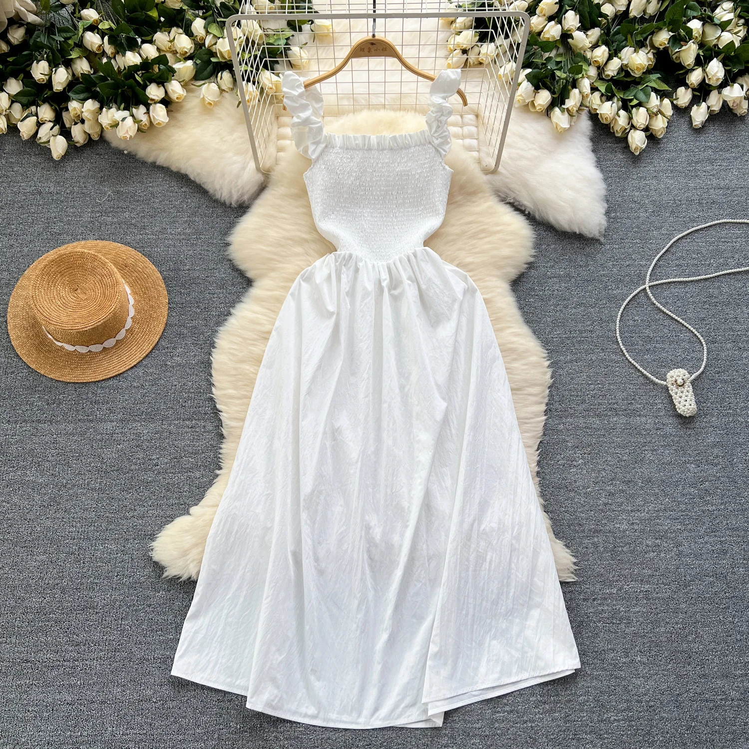 Женское винтажное плиссированное платье-трапеция с квадратным вырезом