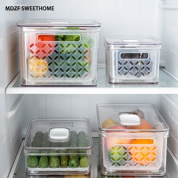 MDZF SWEETHOME Refrigerator Food Storage Containers With Drainer Kitchen Storage Vegetable Fruit Fresh Box Organizer With Lid