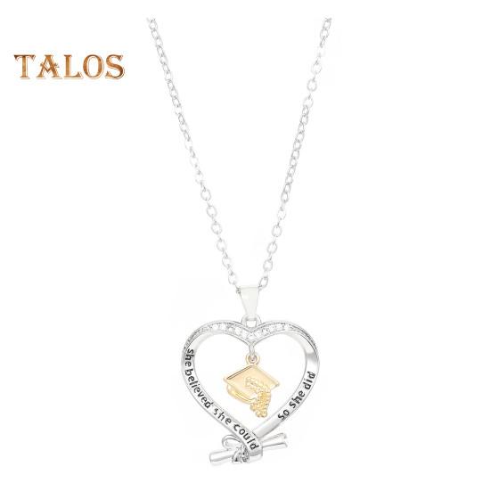 Женское выпускное ожерелье, докторская шляпа, кулон в форме сердца, декор со стразами, регулируемая длина, сплав, выпускная церемония, ожерелье на ключице, ювелирные изделия на шею серебро белый