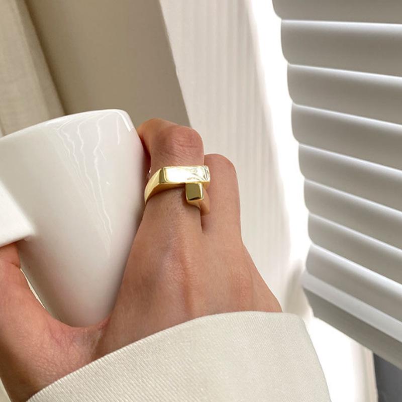 Женское геометрическое кольцо Minority Design: Стерлинговое серебро, Позолоченное, Легкая роскошь, Уникальный стиль Adjustable Open