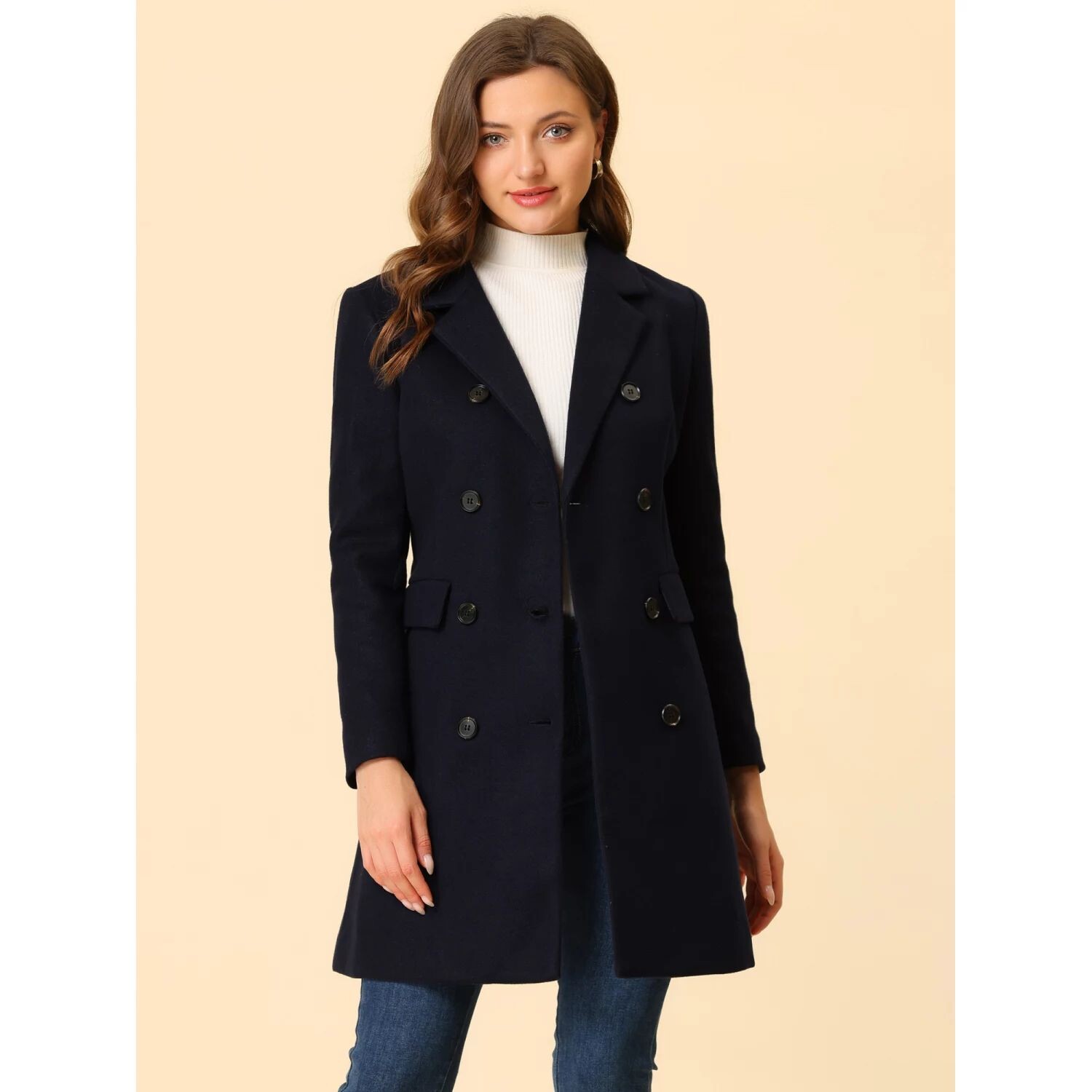 Женское двубортное пальто средней длины с воротником с зубцами и лацканами ALLEGRA K