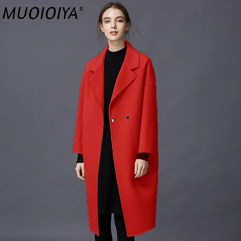 Женское двухстороннее шерстяное пальто, корейское длинное пальто, 100% шерсть, зима 2021
