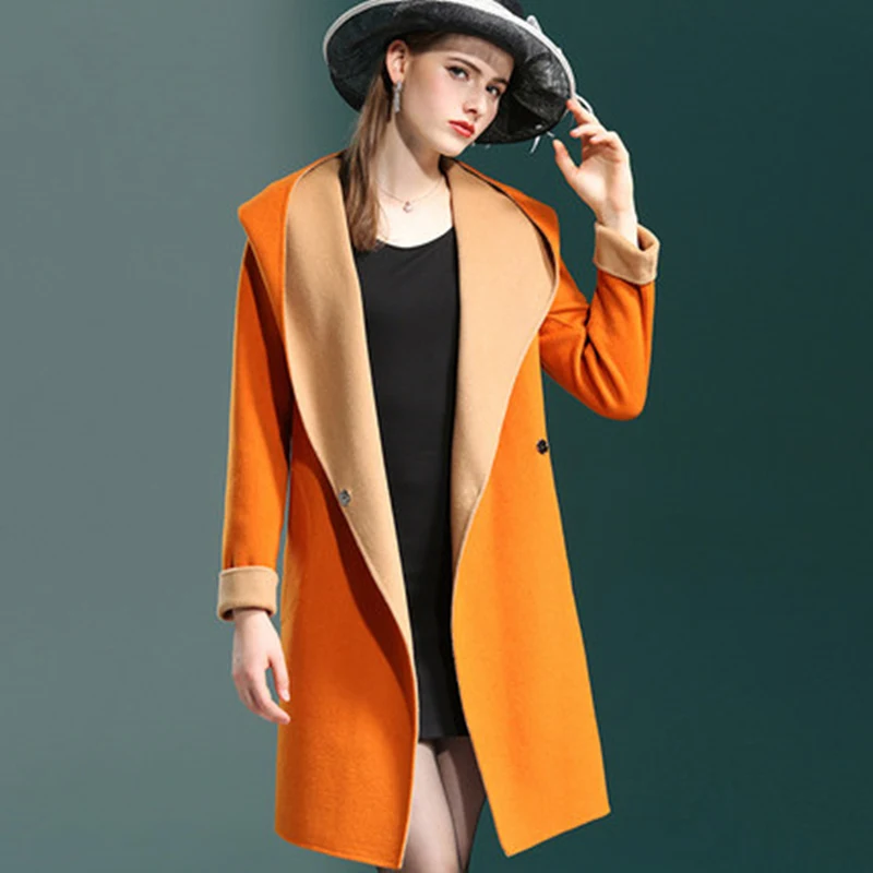 Женское двухстороннее шерстяное пальто с капюшоном и пуговицами, облегающее твидовое пальто, модель ZX397, зима-осень 2020