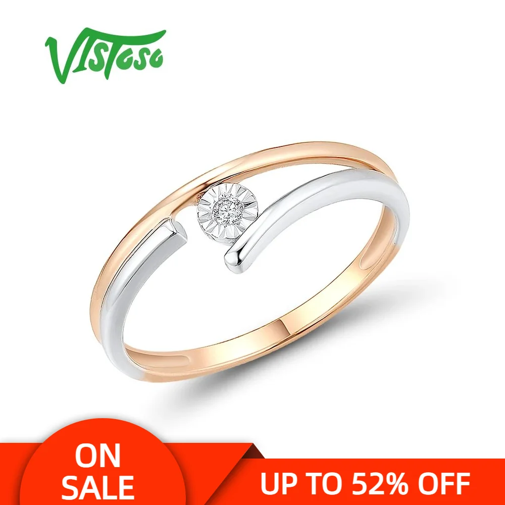 Женское двухцветное Золотое кольцо с бриллиантами VISTOSO, зеркальная пластина 14 к, 585