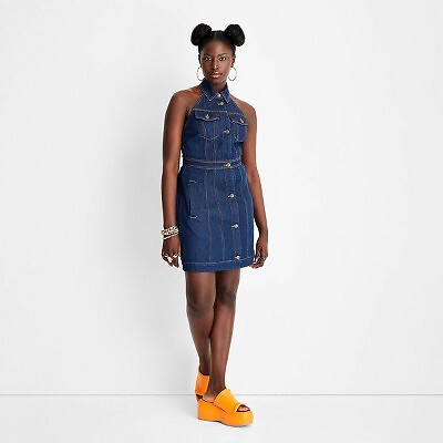 Женское джинсовое мини-платье с воротником - Future Collective with Alani Noelle Blue, Синий