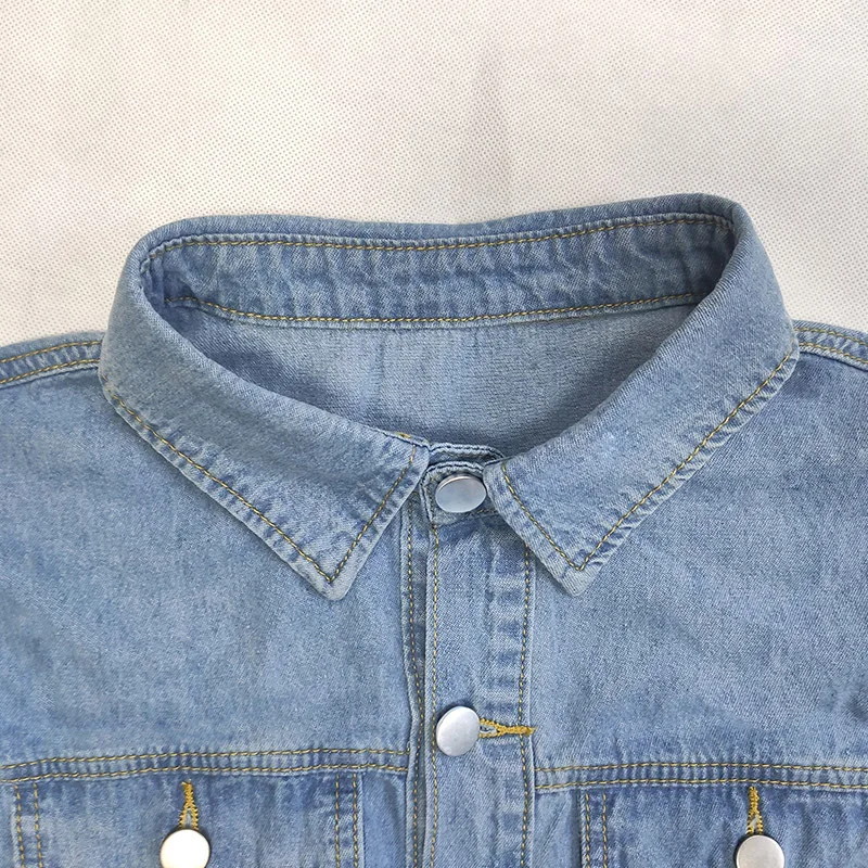 Женское джинсовое платье с коротким рукавом, высокой талией и отворотом