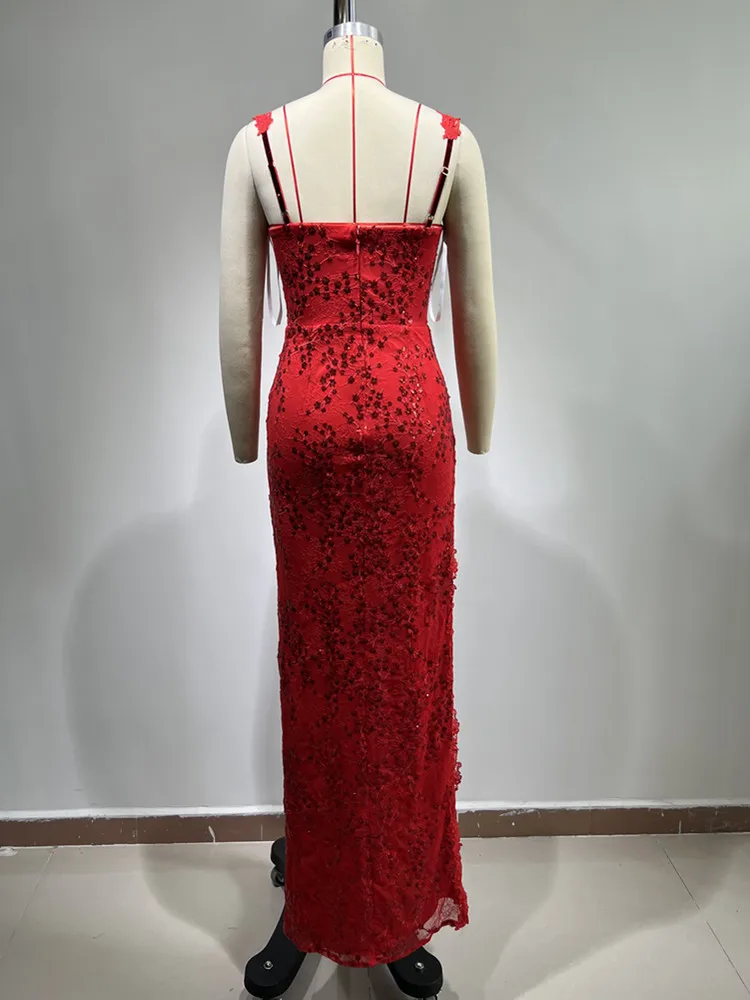 Женское длинное Сетчатое платье макси знаменитости с V-образным вырезом и блестками