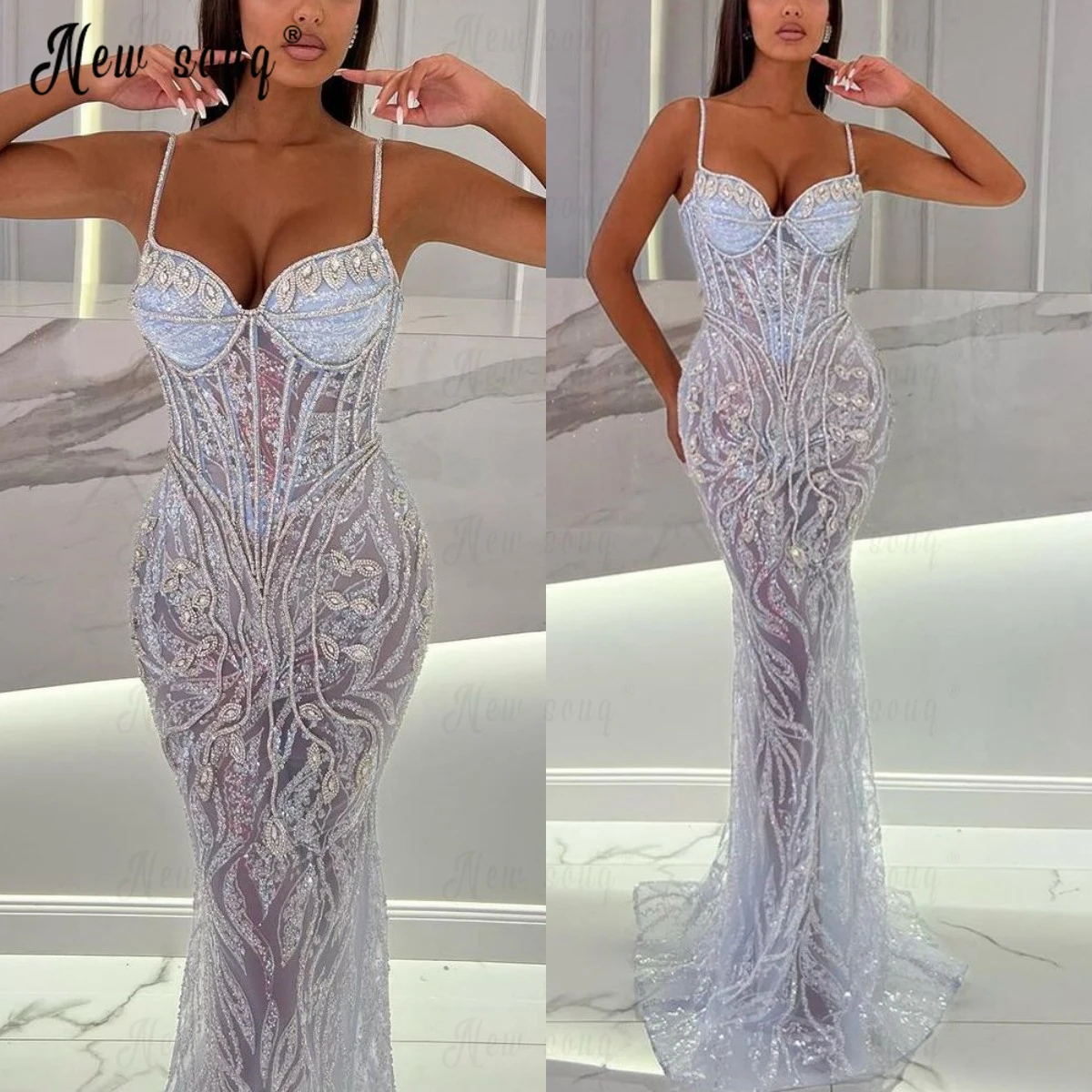Женское длинное блестящее платье-русалка, платье с блестками и бисером, на бретельках, лето 2023