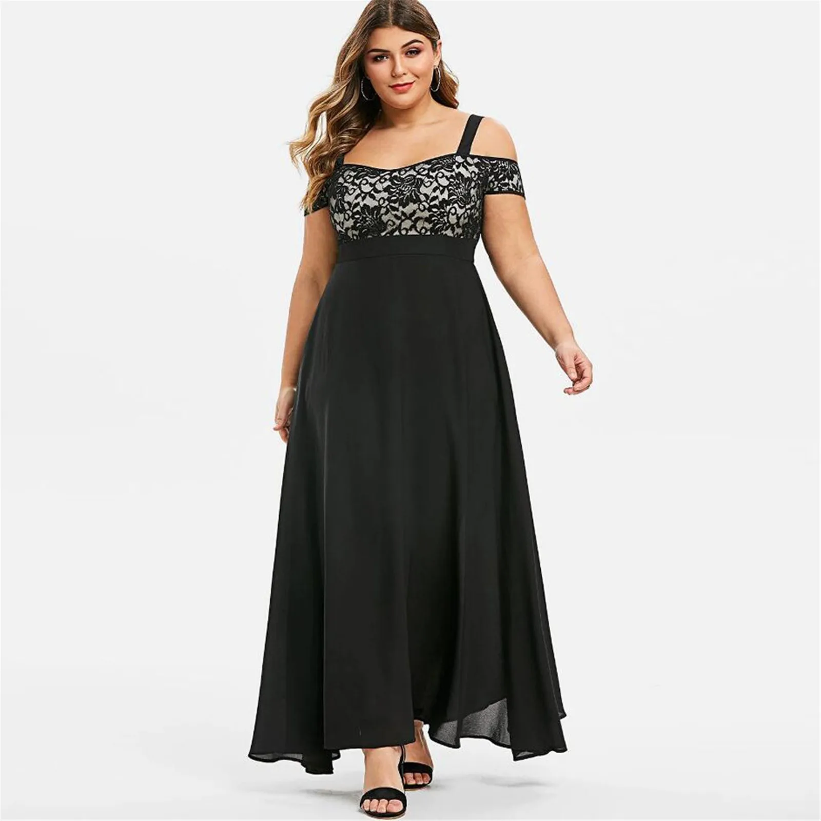Женское длинное вечернее платье-макси с открытыми плечами и цветочным кружевом