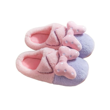 Ymiytan Ladies Lightweight Fuzzy Slides Indoor Cozy Winter Slippers Bedroom Bow Pink Style B 7-7.5