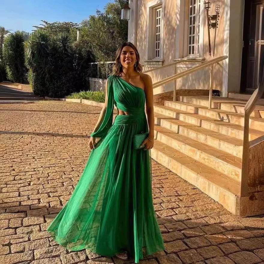 Женское длинное зеленое облегающее платье с открытыми плечами XL зелёный
