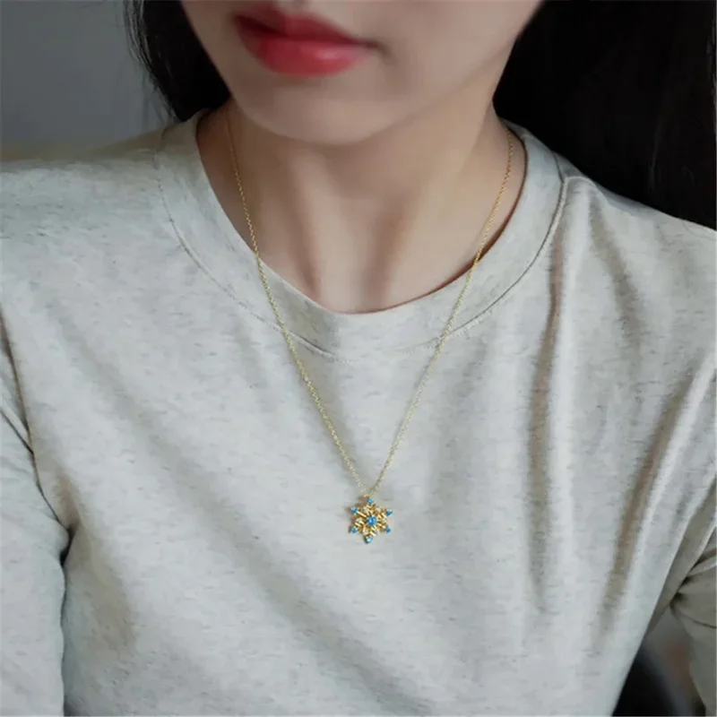 Женское длинное ожерелье из серебра 925 пробы с инкрустированным голубым цирконием