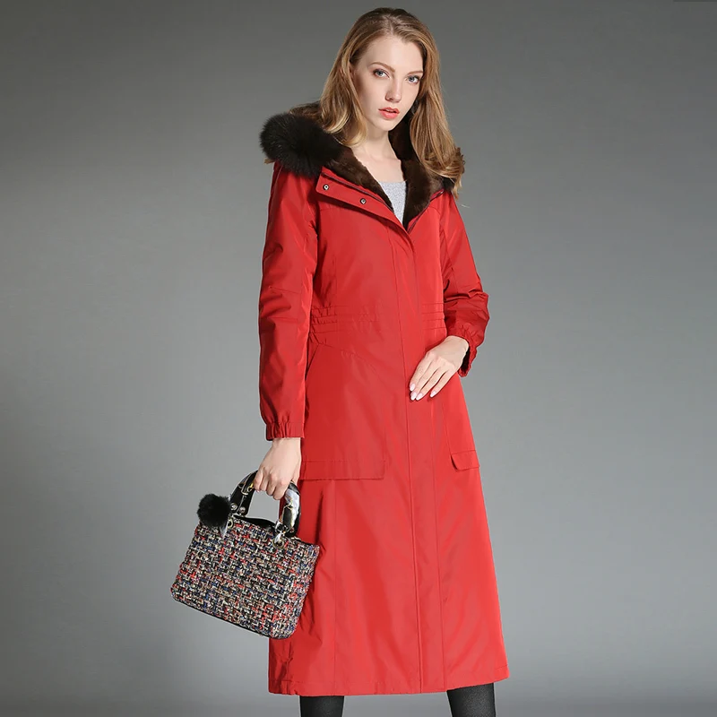Женское длинное пальто с меховой подкладкой, зимняя парка с воротником из лисьего меха, Размер 4xl, MY4068, 2020