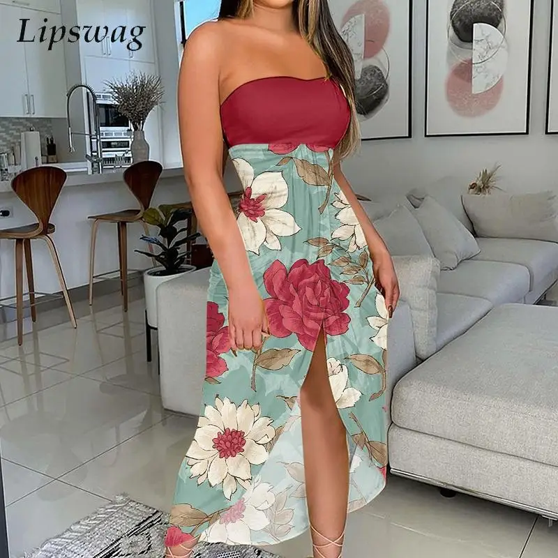 Женское длинное платье без бретелек, с открытыми плечами и цветочным принтом