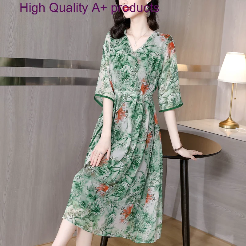 Женское длинное платье из искусственного шелка, элегантное свободное винтажное платье с поясом, лето 2023