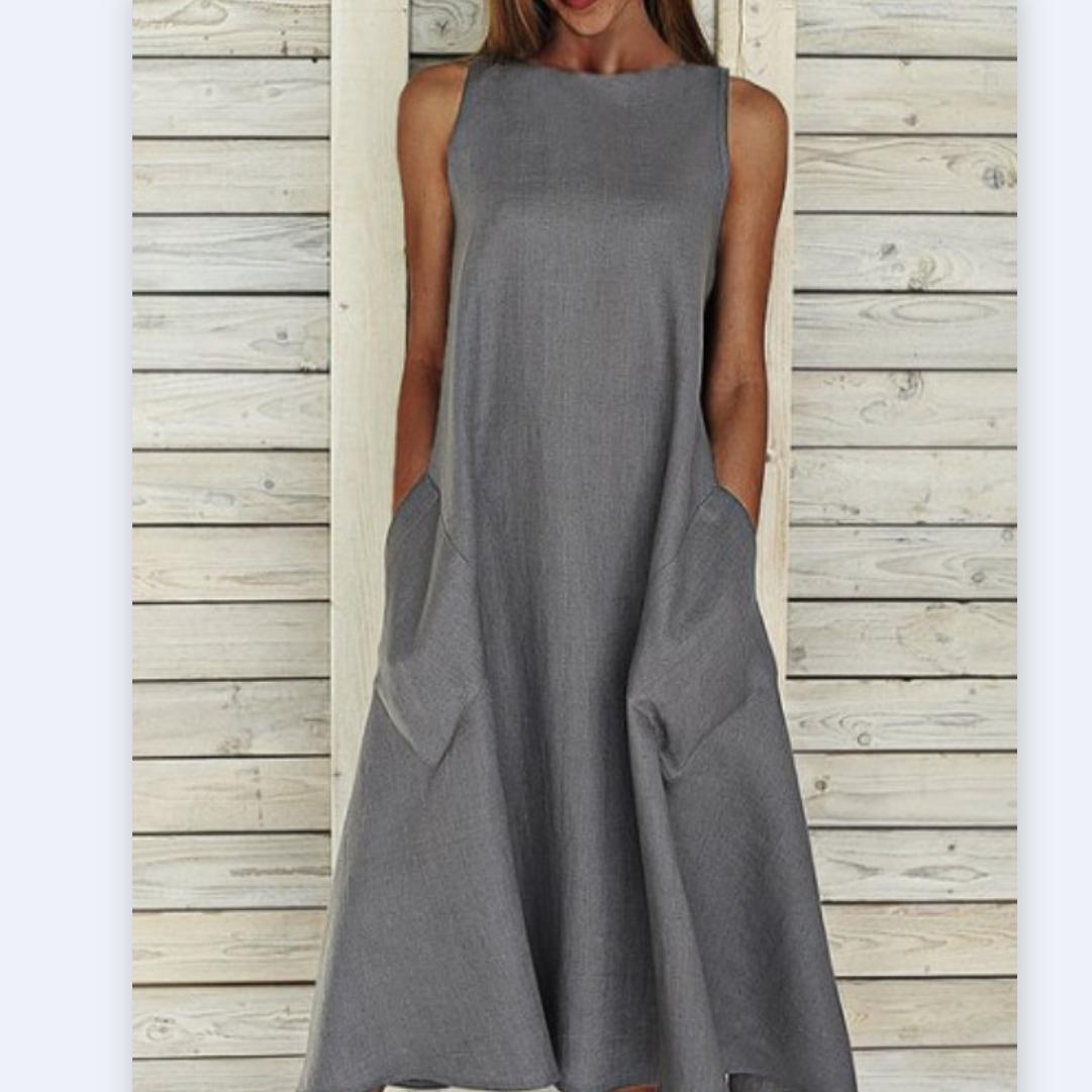 Женское длинное платье макси, женское летнее платье без рукавов с круглым вырезом, повседневные длинные платья, платье из полиэстера M серый