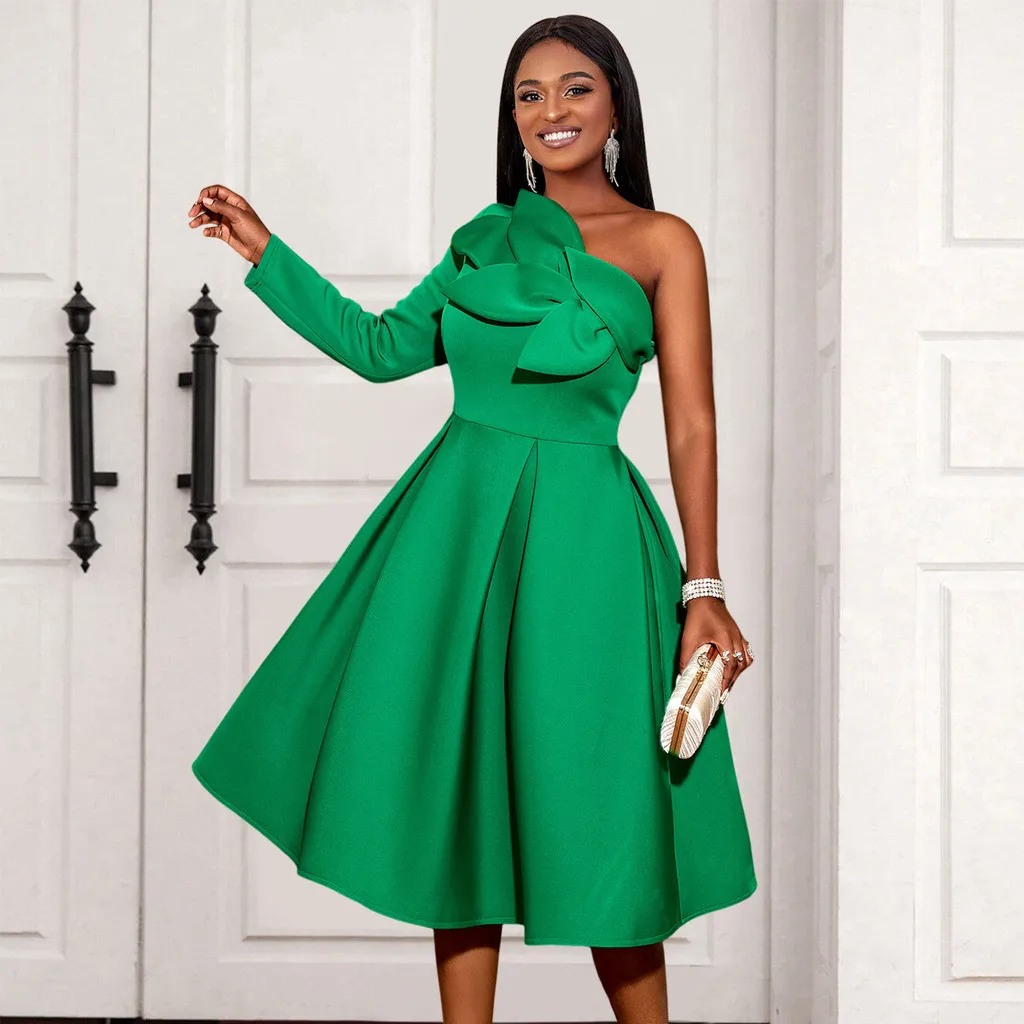 Женское длинное платье средней длины, элегантное плиссированное платье составного кроя с открытыми плечами и длинными рукавами