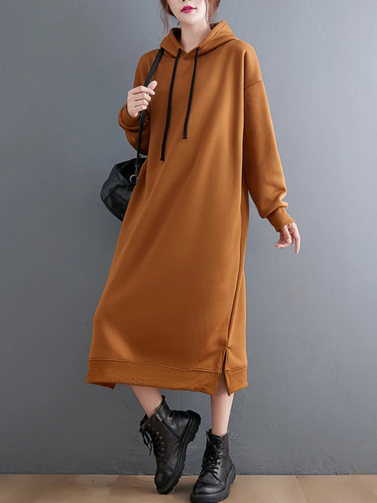 Женское длинное платье с капюшоном NYFS, свободное однотонное платье в Корейском стиле, осень 2023