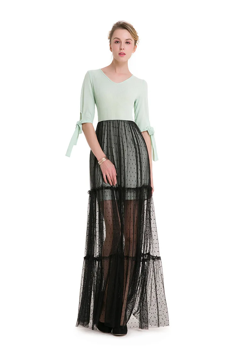 Женское длинное платье с кружевом, V-образным вырезом и рукавом до локтя