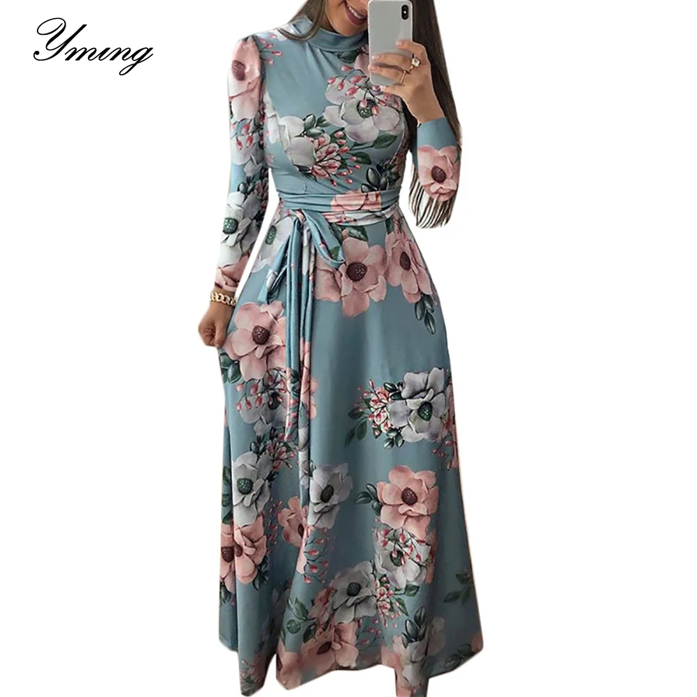 Женское длинное платье YMING в стиле бохо, винтажное Праздничное Платье макси с цветочным принтом и длинным рукавом, элегантное пляжное плать...