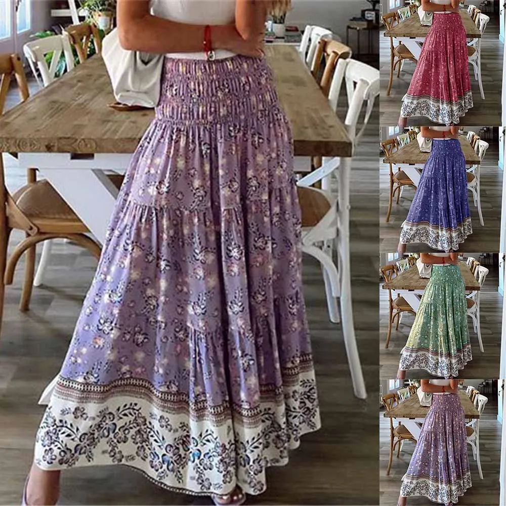 Женское длинное пляжное платье-макси с цветочным принтом и высокой талией