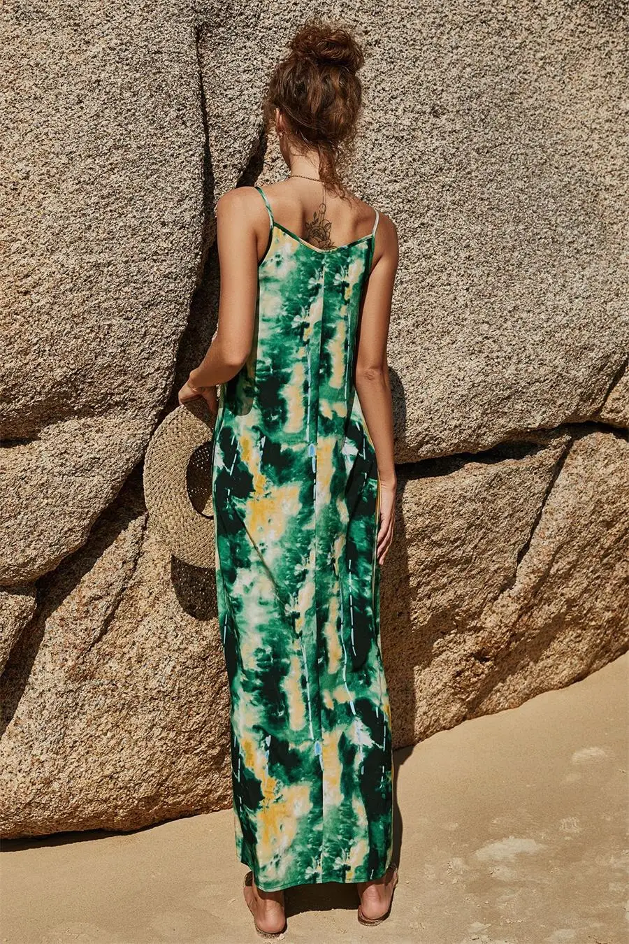 Женское длинное пляжное платье на бретелях-спагетти, с V-образным вырезом