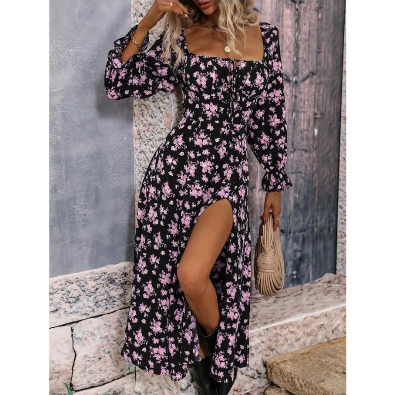 Женское длинное пляжное платье с квадратным вырезом, длинным рукавом и бантом