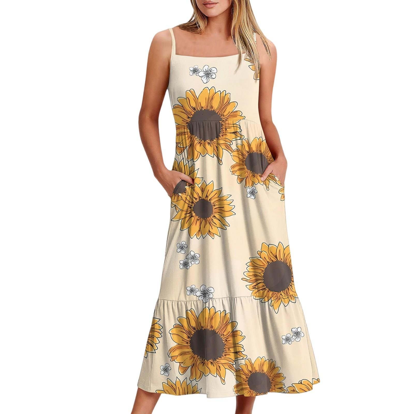 Женское длинное пляжное повседневное элегантное платье макси на тонких бретельках с цветочным принтом, струящееся платье в стиле бохо M оранжевый