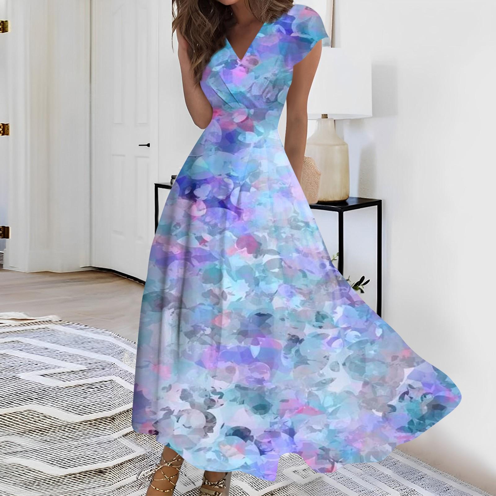 Женское длинное повседневное платье. Летнее платье с короткими рукавами и v-образным вырезом на талии с принтом. XL